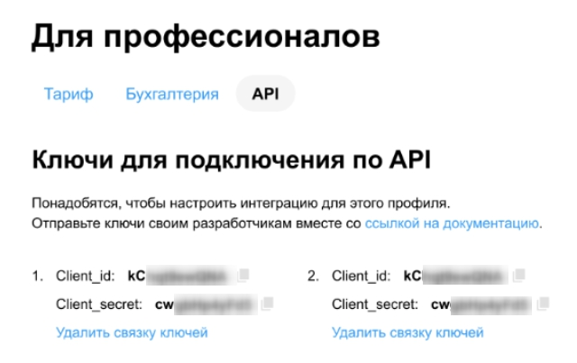 У вас появятся client_id и client_secret. Они всегда будут доступны вам во вкладке API.